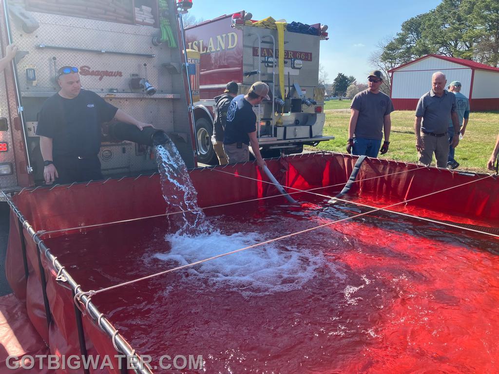| On Sunday afternoon, March 22, approximately 65 participants from Dorchester County, Maryland, and neighboring counties took part in a two-hour water hauling exercise using tankers. This exercise served as the practical component of a 16-hour Rural Water Supply Operations Seminar, organized by the Dorchester County Firefighters Association and hosted by the East New Market Volunteer Fire Department.