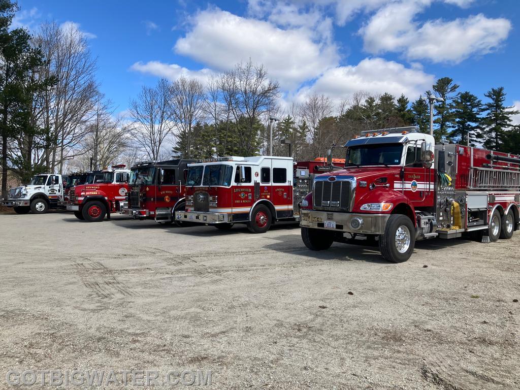 Auburn Engine 2, Auburn Tanker 1, Auburn Tanker 2, Derry Engine 4, Candia Tank 1, Hooksett Engine 5, Londonderry Tanker 1, Bedford Engine 3, Chester Tank 1, Litchfield Engine 4, Sandown Tank 1, and Raymond Tank 1.