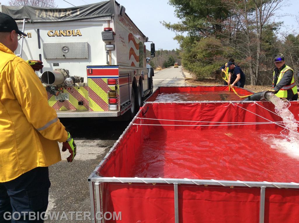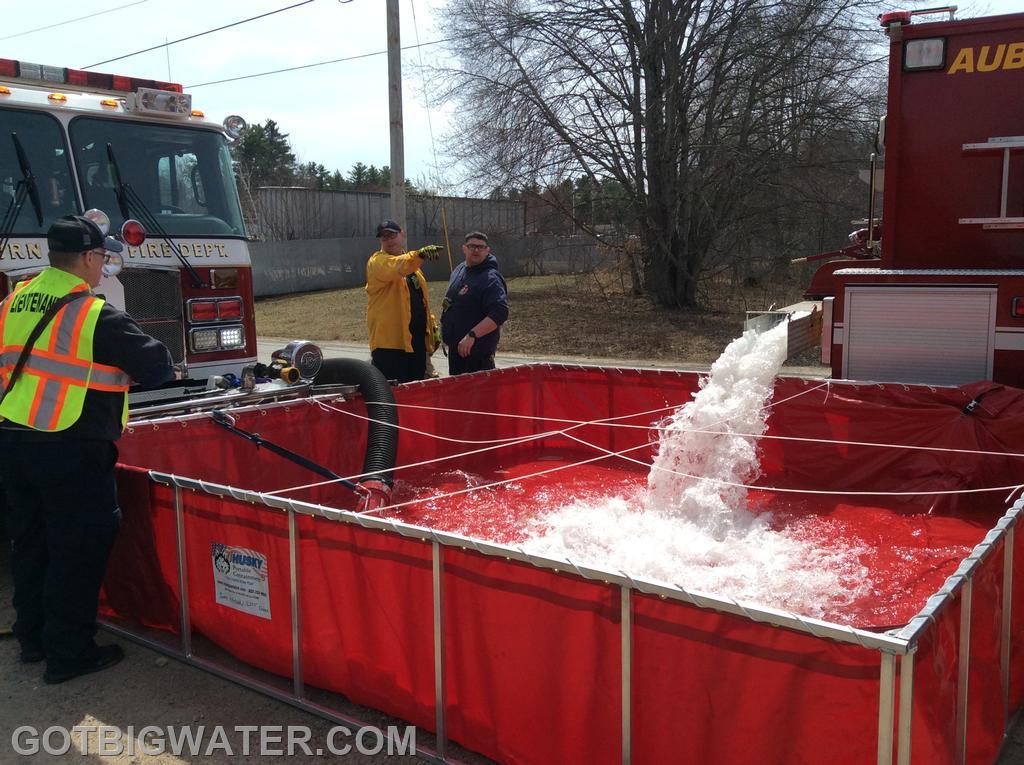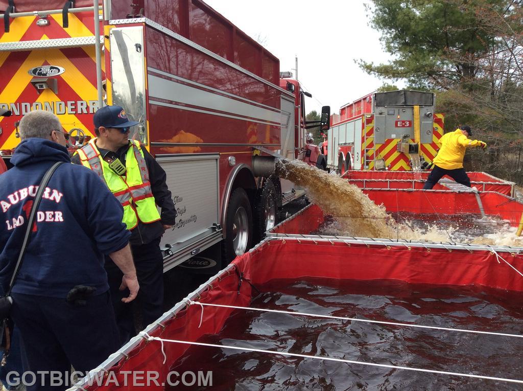 This past Sunday, fire department personnel from Auburn, New Hampshire and neighboring communities participated in a two-hour water-hauling exercise using tankers. This drill was the final component of a 16-hour Rural Water Supply Operations Seminar, which focused on effective methods for transporting and supplying water in rural settings.